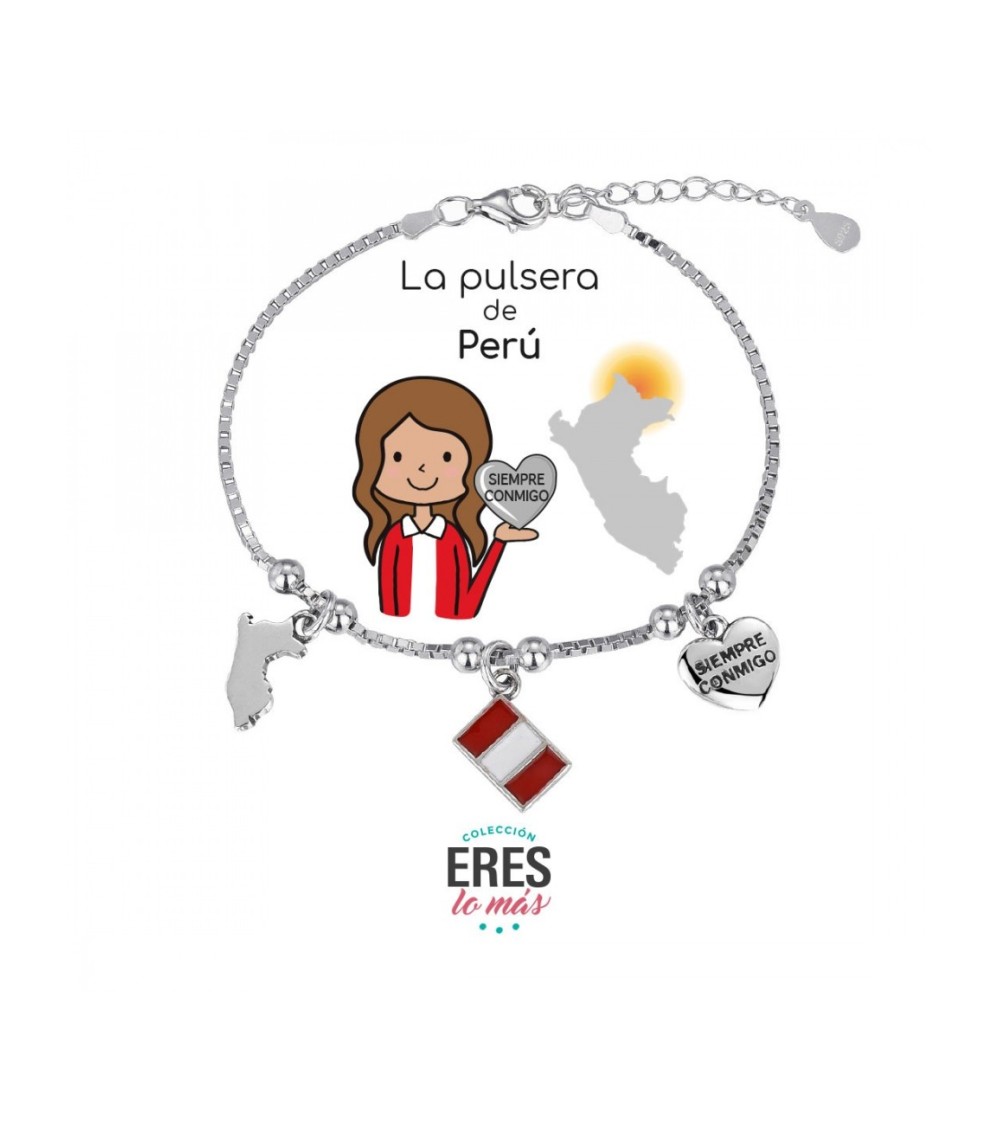 La Pulsera Perú de la colección "Eres lo Más" de Promojoya es una pieza cargada de simbolismo y elegancia. Fabricada íntegramente en Plata de Primera Ley (925 mm), esta joya es el regalo ideal para quienes aman esta tierra, su historia y su cultura.