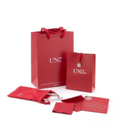 La pulsera Uno de 50 "Gimme Love" PUL1850 es una joya que transmite un mensaje universal de amor y afecto, con el inconfundible sello artesanal de la marca. Este diseño se compone de una cadena elástica de cuentas esféricas de metal, todas ellas meticulosamente bañadas en plata, lo que le confiere un brillo uniforme y sofisticado.