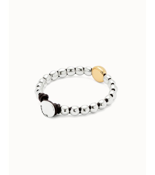 Descubre la pulsera Uno de 50 "My Soul" PUL2523ORO. Un diseño emblemático con cuentas bañadas en plata y una distintiva bola central bañada en oro. Un toque de contraste y sofisticación artesanal. Disponible en Joyería Onix Lugo.