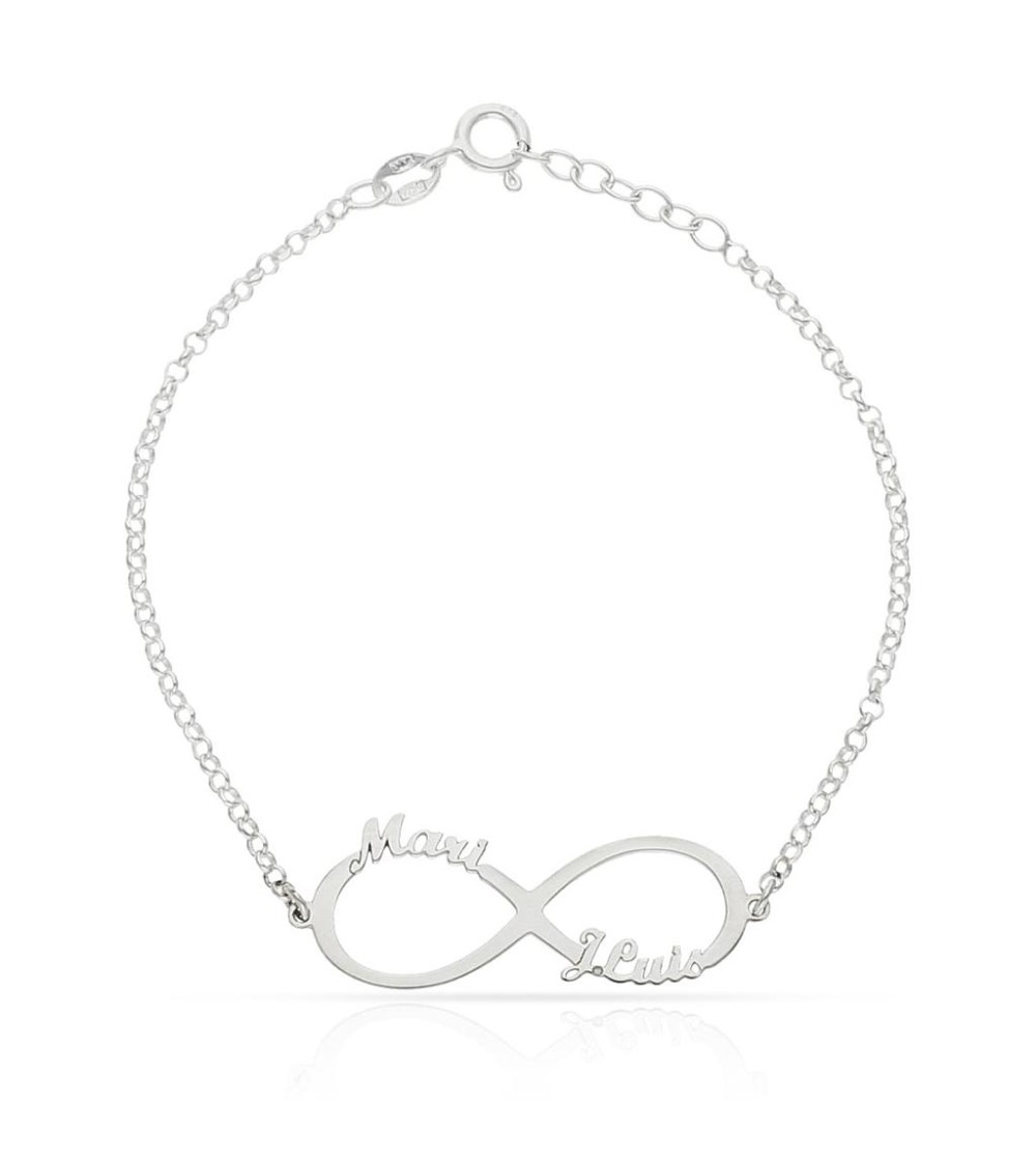 El motivo del infinito está cuidadosamente curvado para adaptarse cómodamente a la forma de la muñeca y va unido a una cadena de eslabones de alta calidad. Su acabado pulido brillante resalta la pureza de la plata de ley 925, convirtiéndola en una joya luminosa y resistente para el día a día. Al ser una pieza fabricada bajo pedido, cada nombre se cala con precisión, logrando un regalo totalmente único y personalizado que celebra el amor o la amistad verdadera.