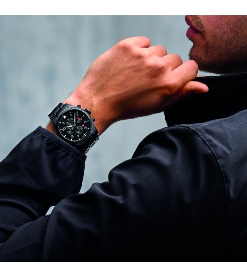 Descubre la precisión y la robustez de la relojería suiza con el Reloj Swiss Military Hanowa SMWGI0000431. Este impresionante cronógrafo es un testimonio de la calidad y durabilidad que caracterizan a los relojes con sello "Swiss Made". Su diseño contundente, con una caja y brazalete de acero inoxidable con tratamiento IP negro, le confiere una estética moderna y deportiva, ideal para el hombre activo.